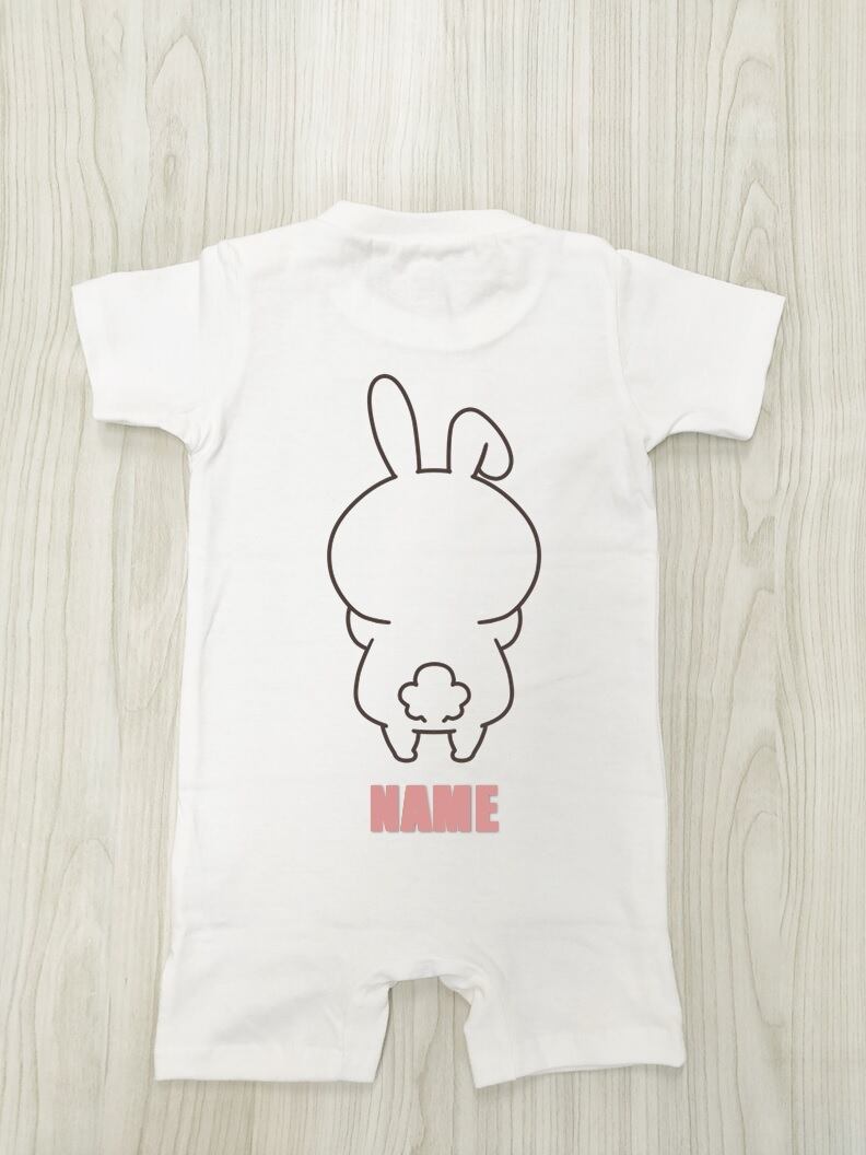 ロンパースの表面と背面にキャラクターの正面と後姿がプリントされています。